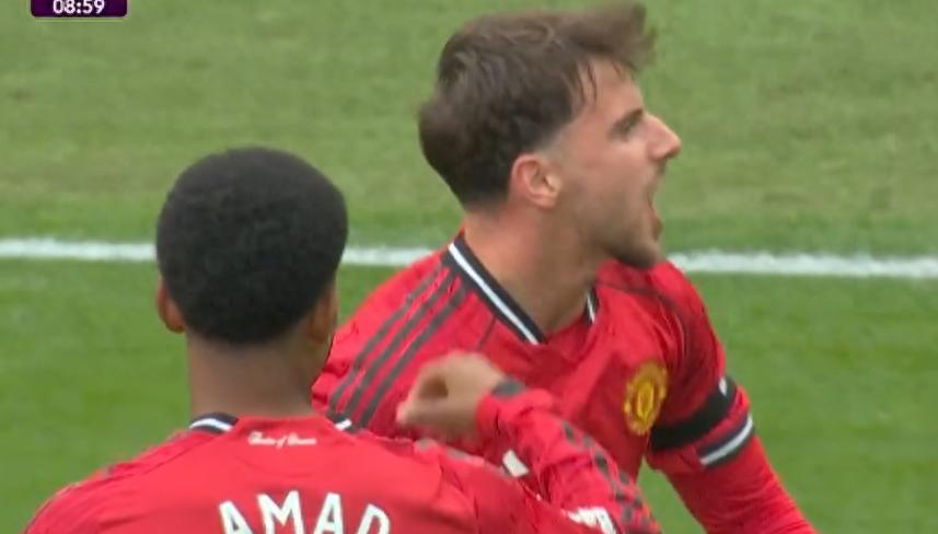 阿莫林的这次“豪赌”迅速取得回报。比赛的第7分钟,姆贝莫右路内切之后挑传,禁区中路无人盯防的芒特停球之后顺势右脚扫射破门,1比0!